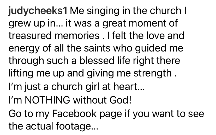 Judy Cheeks returns to her home church where she started singing at 7 years old….